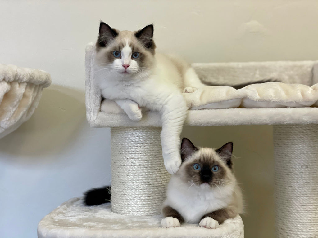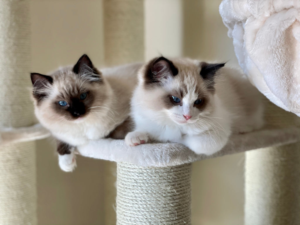 Ovie en Dex hebben alles wat ze willen, ze kunnen voluit van hun leven genieten bij Trish. Ze hebben niet alleen hun eigen kattenkamer, ze hebben ook zes krabpalen! "We kochten voor hen de krabpalen Devon Rex, Cat Penthouse, Corner Coon, Maine Coon Lounge, Maine Coon Tower en krabton Coony 80", aldus Trish. "Er staan er drie in hun kattenkamer, zodat ze daar kunnen spelen. De andere drie staan op onze slaapkamer. We keken er zo naar uit om de krabpalen in het echt te zien, vooral de hangmatten. Mijn man en ik zijn zelfs een beetje jaloers! We willen er ook eentje, maar dan eentje in onze maat natuurlijk", zegt Trish met een glimlach.