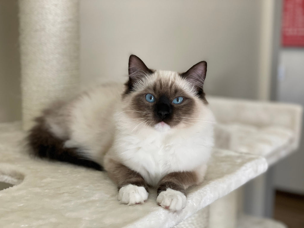 Je zou denken dat ze elke dag ergens anders zouden liggen, maar dat is meestal niet het geval. Ovie en Dex hebben allebei hun favoriete plekjes. "Ovie is echt fan van de hangmatten, dus hij zal je meestal daarin vinden. Als hij daar niet in ligt, ligt hij vast ergens te slapen op de Devon Rex. Dex is dan weer fan van de Corner Coon op zich, hij ligt waarschijnlijk daar."