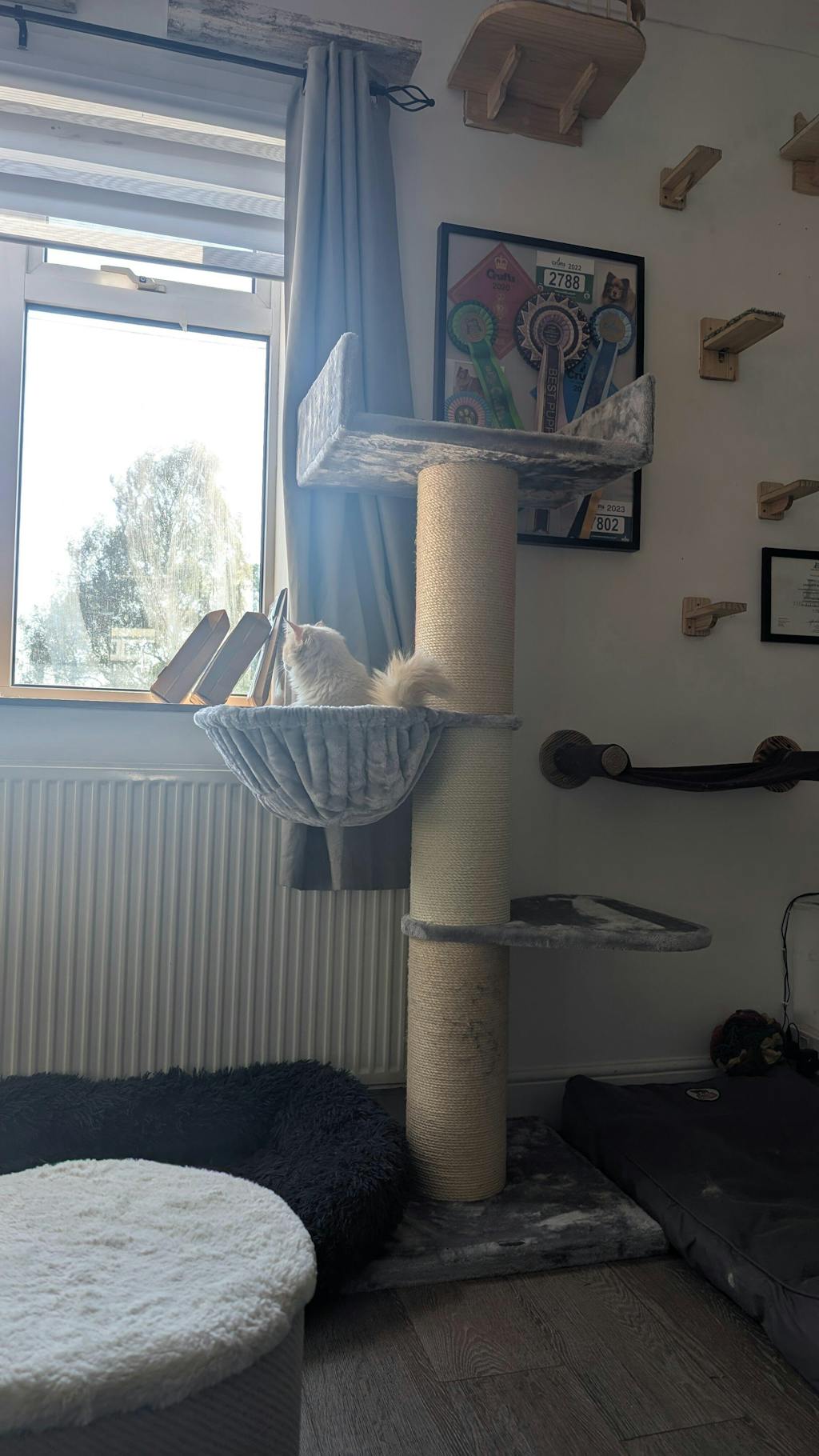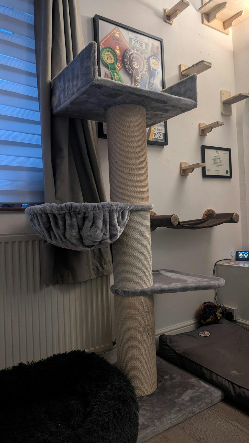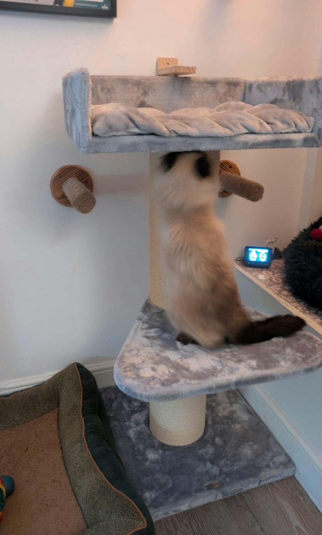 Väldigt fint klösträd och bädd som är stor och fin. Min katt är en vanlig huskatt så hon får gott om utrymme i bädden och hon älskar den.
