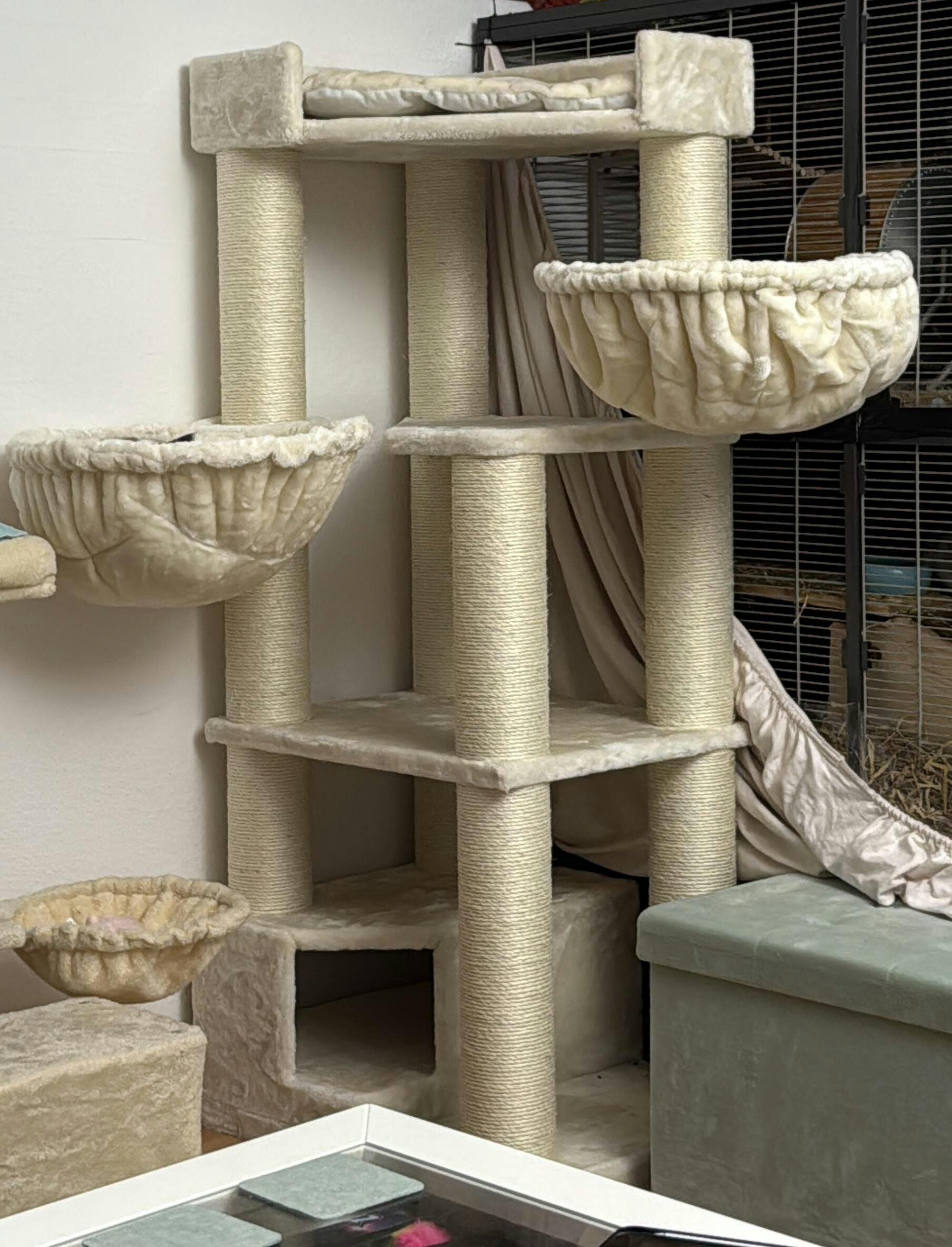 With this cat tree, you can keep your cat fit and healthy! It gives your cat plenty of opportunities to go wild. The 12 ( ! ) sisal poles - 8 of which are at least 40 cm tall - give your cat myriad opportunities to scratch and sharpen its nails. This allows even the largest cats to stretch themselves to their full length, which offers important ergonomic benefits for your cat's joints.