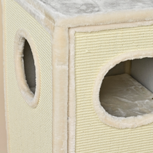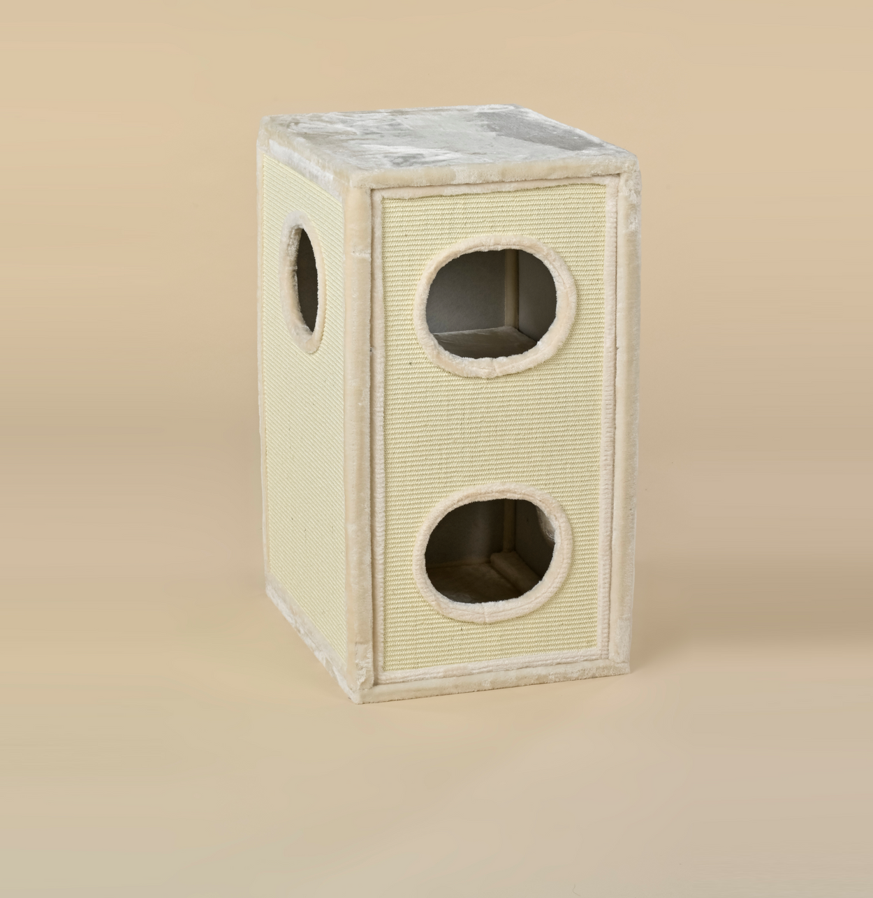 This is a cream-coloured scratching barrel that you can put somewhere in your home or use as a replacement component from RHR Pets. This scratching barrel, which measures 90 cm high, 50 cm wide and circa 60 cm deep, can be ordered separately to replace the scratching barrel that comes with the Cat Paradise. The sisal walls are circa 87 cm high and made from high-quality natural sisal. Of course, you can also put this scratching barrel somewhere in your home on its own! This scratching barrel is not only a fantastic sat hideaway, but - because it is fully upholstered - it is also a wonderful place for your cat to relax or hide on the deliciously thick 600 g/m2 plush pillow which measures 55 x 45 cm and is circa 5-6 cm thick. With its large entrances with a diameter of 20 cm and the spacious design, it is also especially suitable for the largest and heaviest cats or for multiple cats that want to use it at the same time.